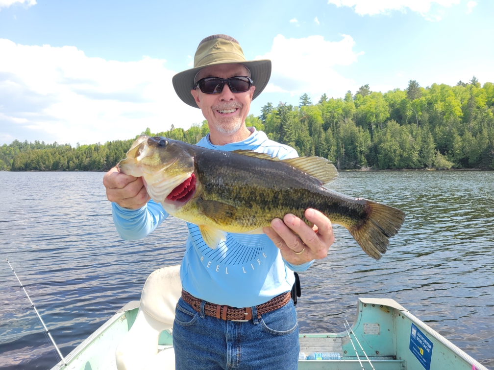 Bluffpoint has an exceptional largemouth fishery with 100+ fish days reported by our guests. The average size of largemouth on Bluffpoint is in the 16 – 18-inch range. Bob’s Bay, which is located on the west side at the north end of the lake is a favourite of many Slippery Winds guests. It takes quite a bit of work to get into Bob’s Bay, as you must portage your boat over a 4-foot-high beaver dam, but the effort is worth it as you can literally catch a 14″ – 16″ largemouth on every cast.